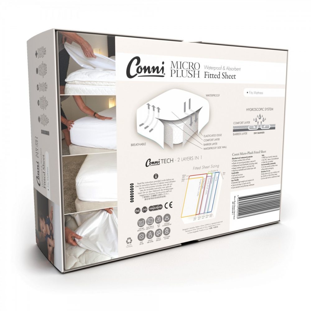 Simply warm machine wash (NOT HOT) with a good quality laundry detergent. An oxygen bleach like Napisan is recommended if there are any difficult stains or odors (do not use harsh bleach). Conni Micro-Plush Mattress Protector and Pillow Protector dry quickly on the clothesline or in the tumble dryer on LOW heat.